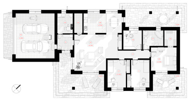 The northern part is almost always in the shade, so in this part it is recommended to equip the utility or technical premises and it is not recommended to plan any bedrooms, windows and show-windows here. It is good to locate the following premises: garage, boiler room, storage rooms and other facilities of a similar character that do not require a large amount of natural light. There may also be the vestibule or kitchen (which usually has a window in the eastern / western part).
